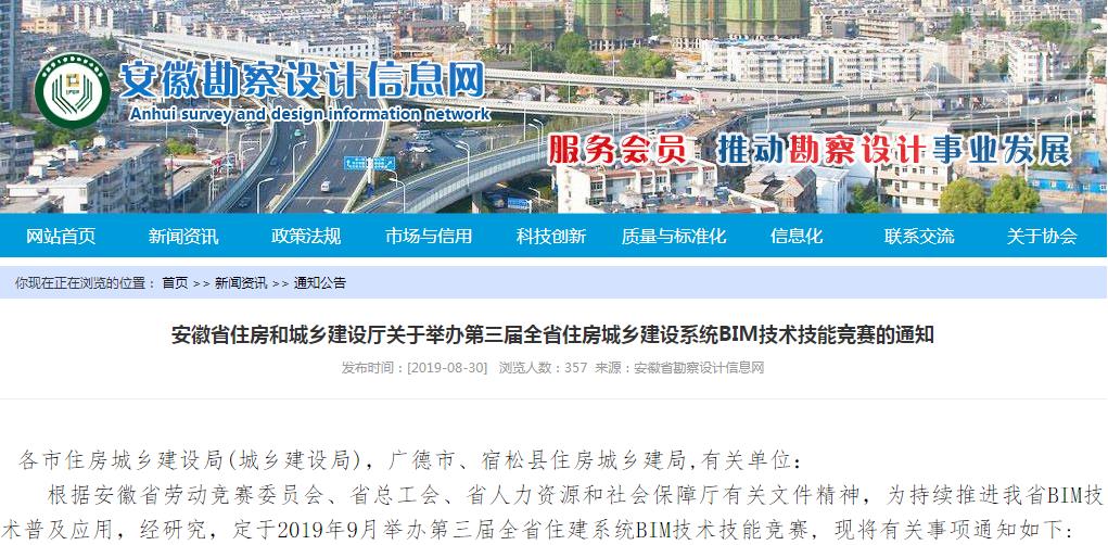 近日,安徽省將BIM技術(shù)提上日程,定于9月舉辦第三屆全省住房城鄉(xiāng)建設(shè)系統(tǒng)BIM技術(shù)技能競(jìng)賽!